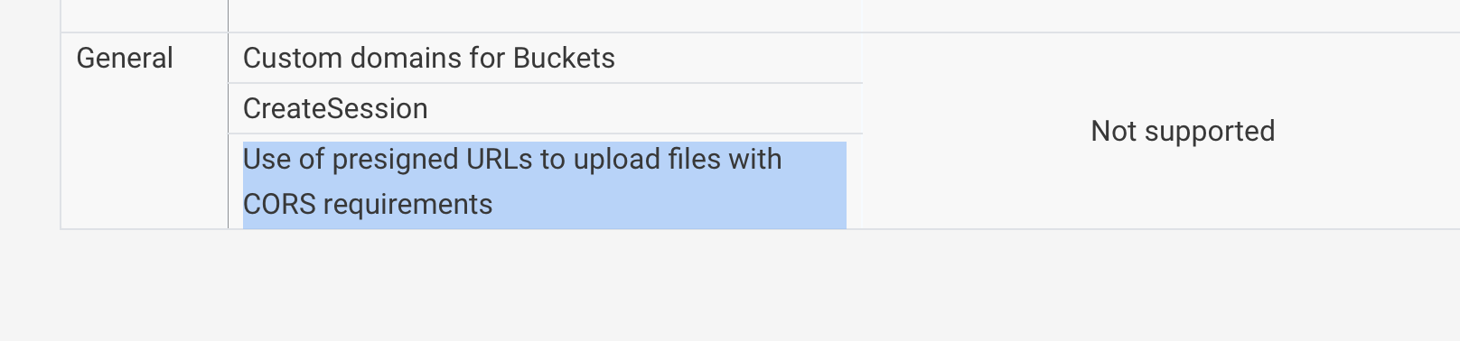 "Use of presigned URLs to upload files with CORS requirements" is not supported