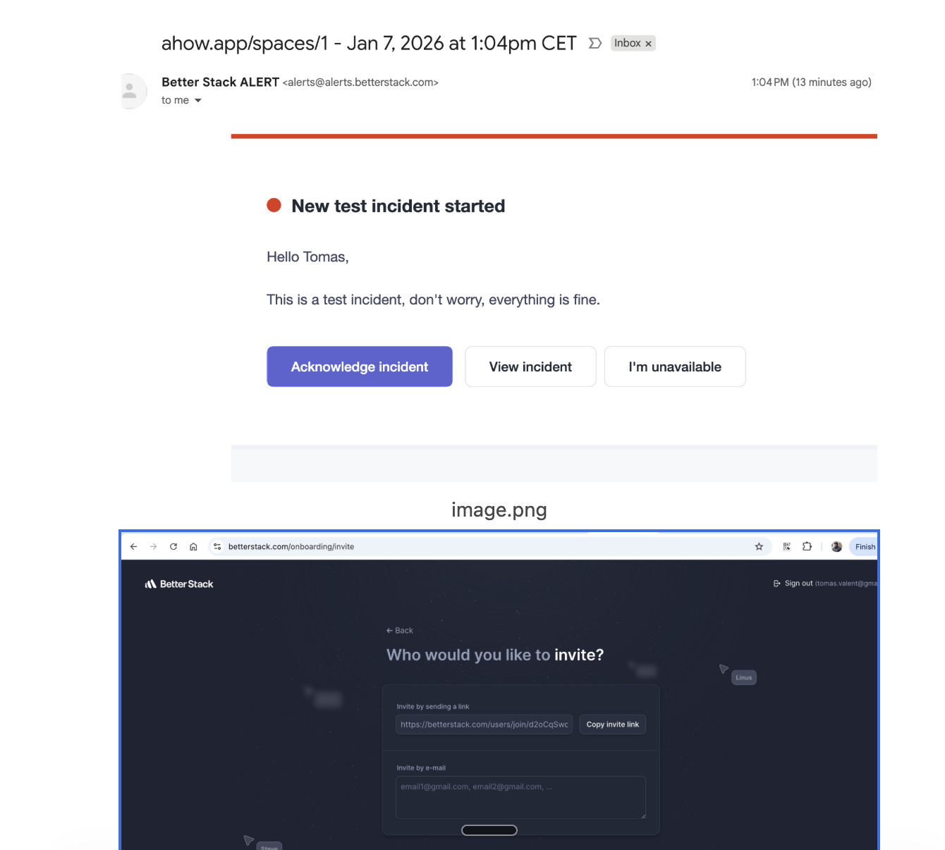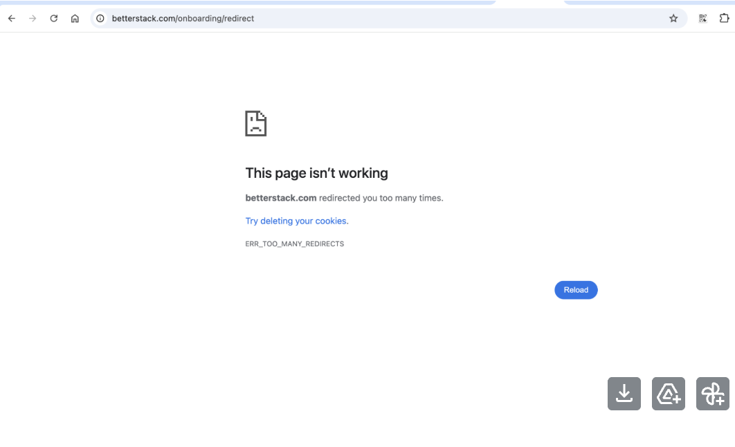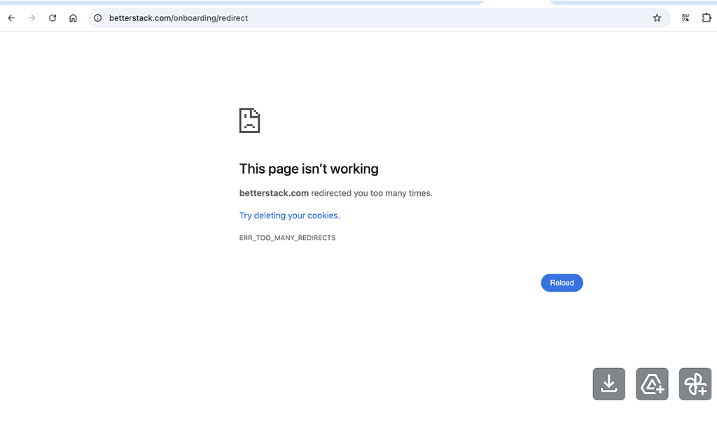 Issue 4: After finishing the onboarding process for uptime, I got stuck in an infinite redirect loop. Now when I access https://betterstack.com/uptime and I click “Sign in” I get redirected to https://betterstack.com/onboarding/redirectI