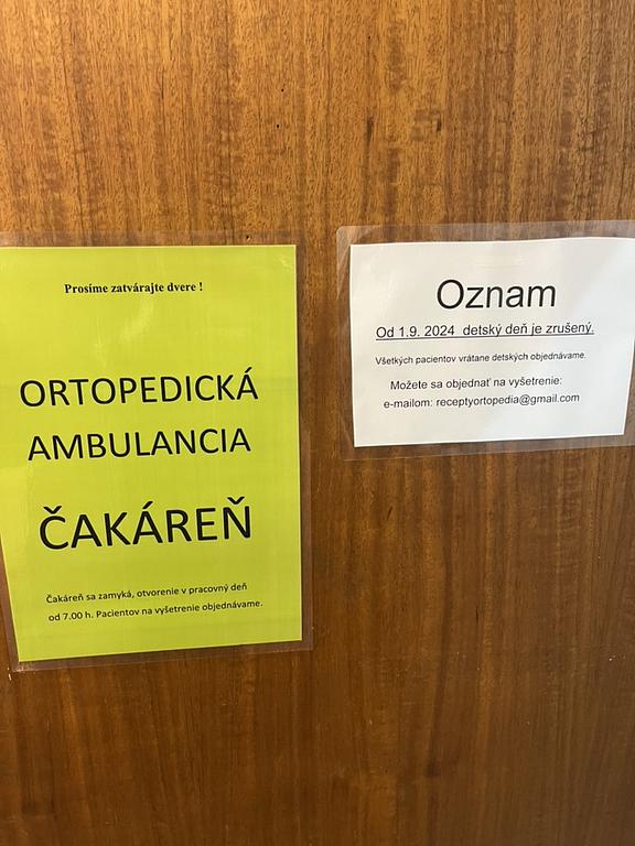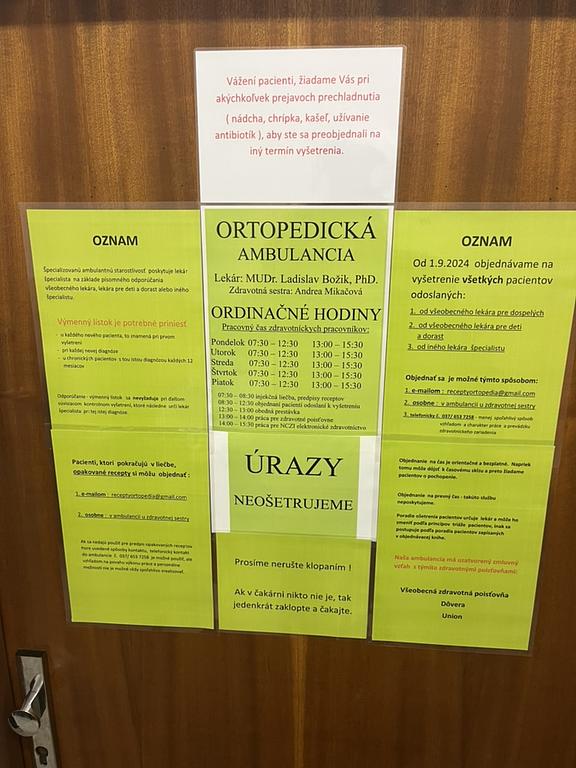 Ortoped dr Božik ma ambulanciu na prvom poschodi v Poliklinika Chrenova v bloku B.