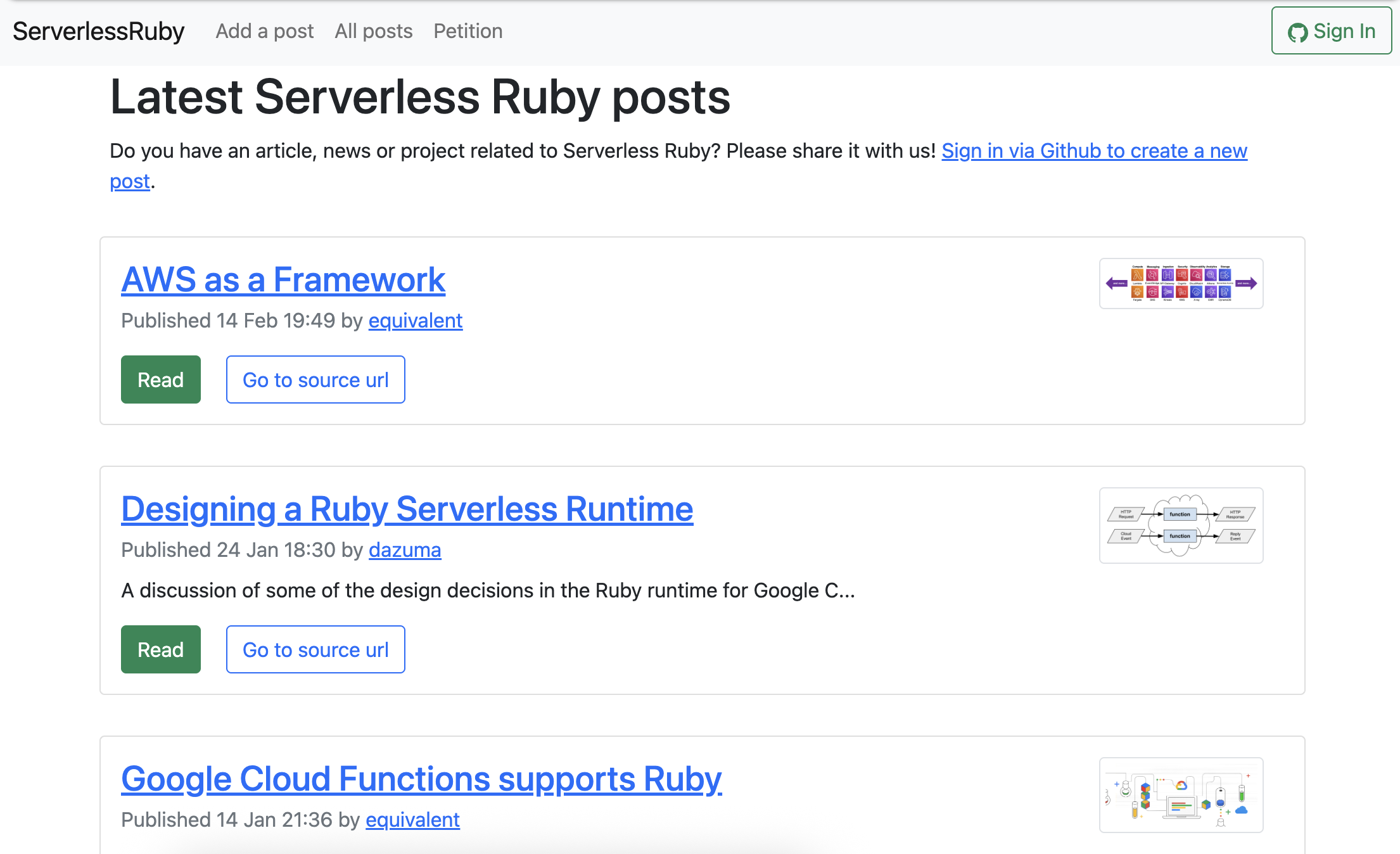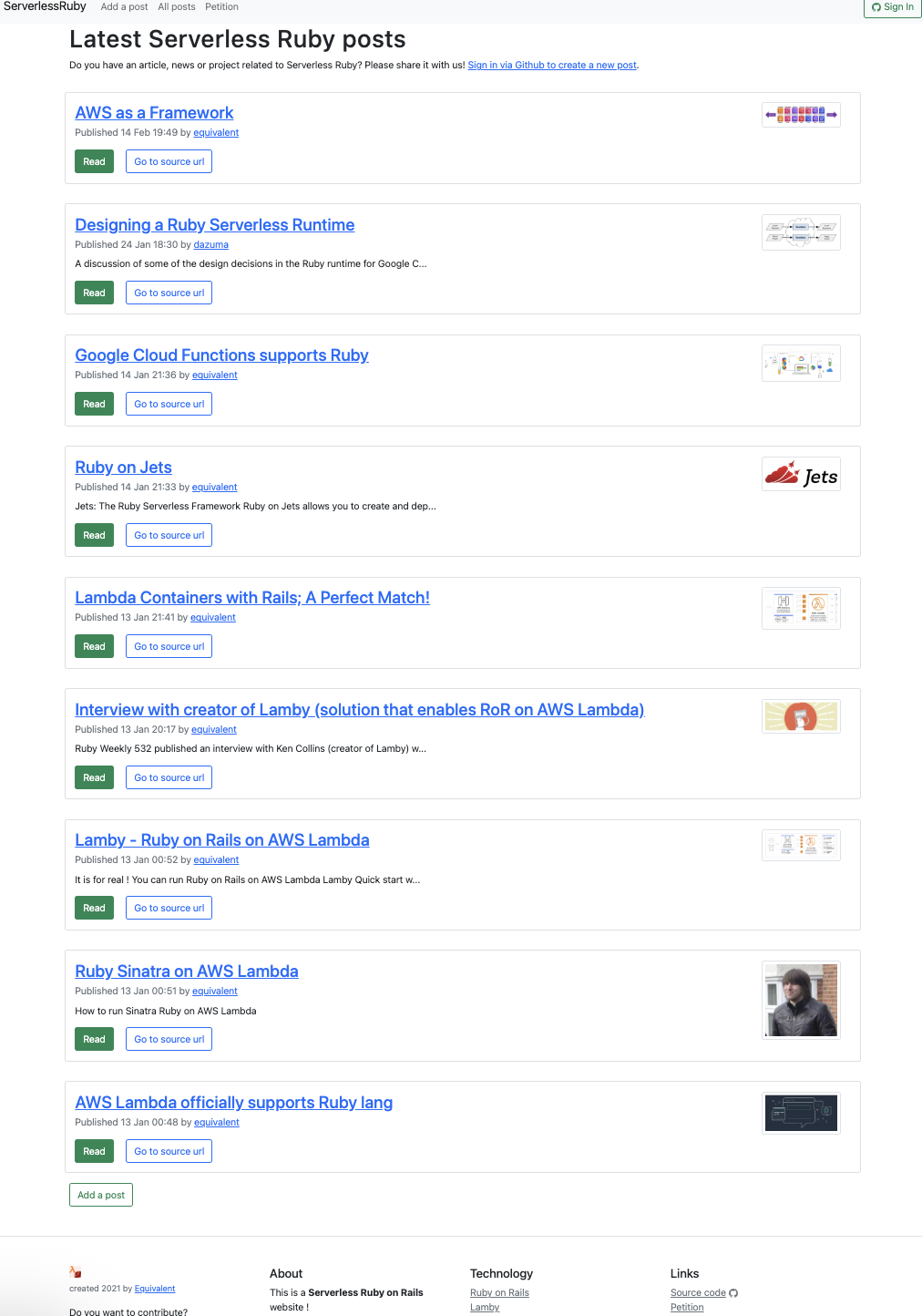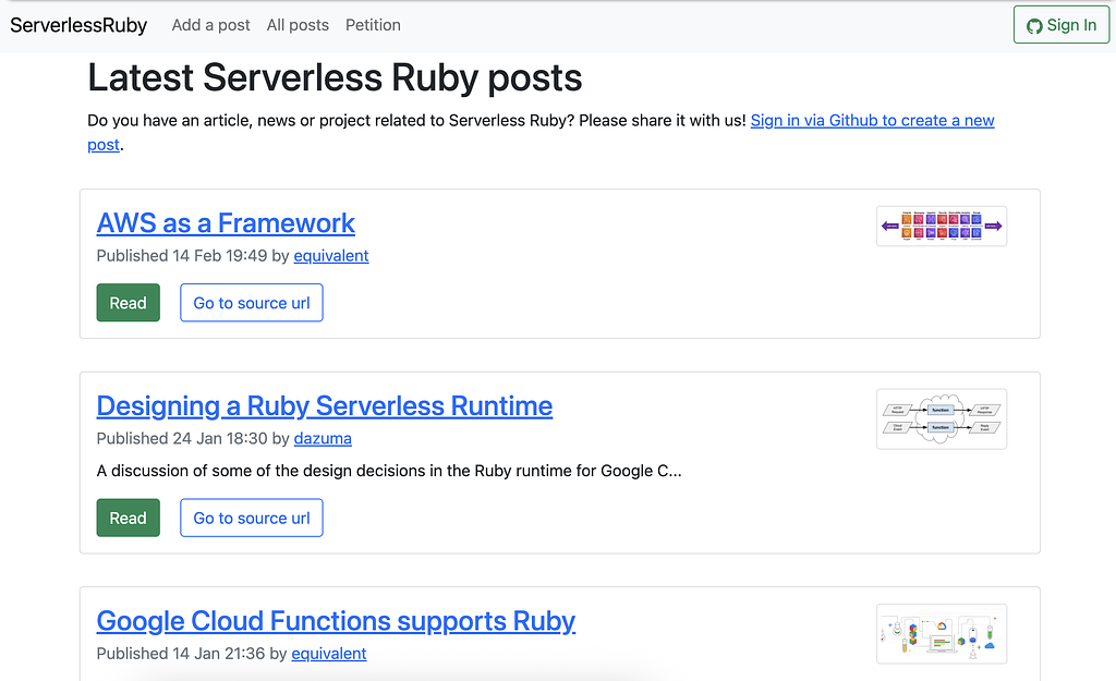 After the petition ended, I converted the domain into a fully serverless Ruby on Rails news publishing platform dedicated to posts about serverless Ruby (Similar what RubyFlow was doing).